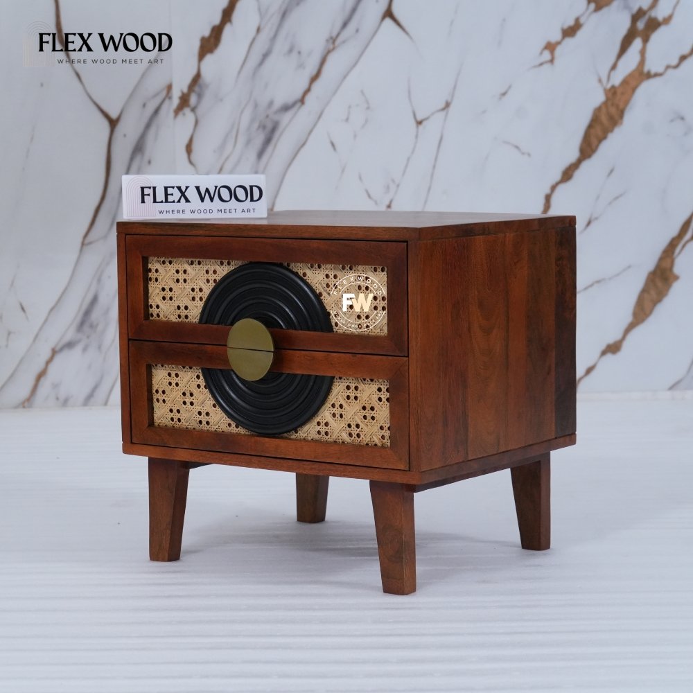 Modern Cane Bedside Table (Honey finish)