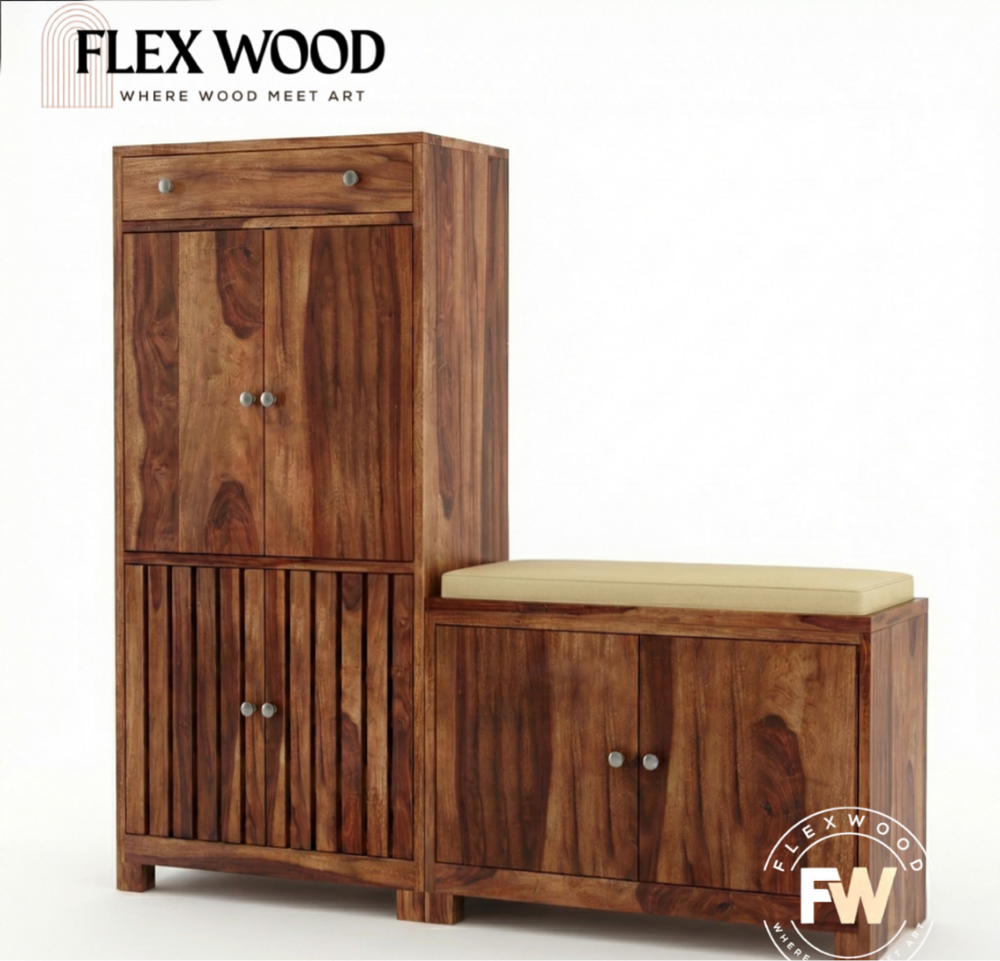 Floreta Shoes Rack With Seating(honey finish)