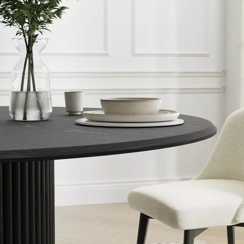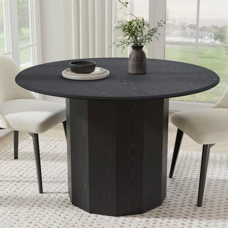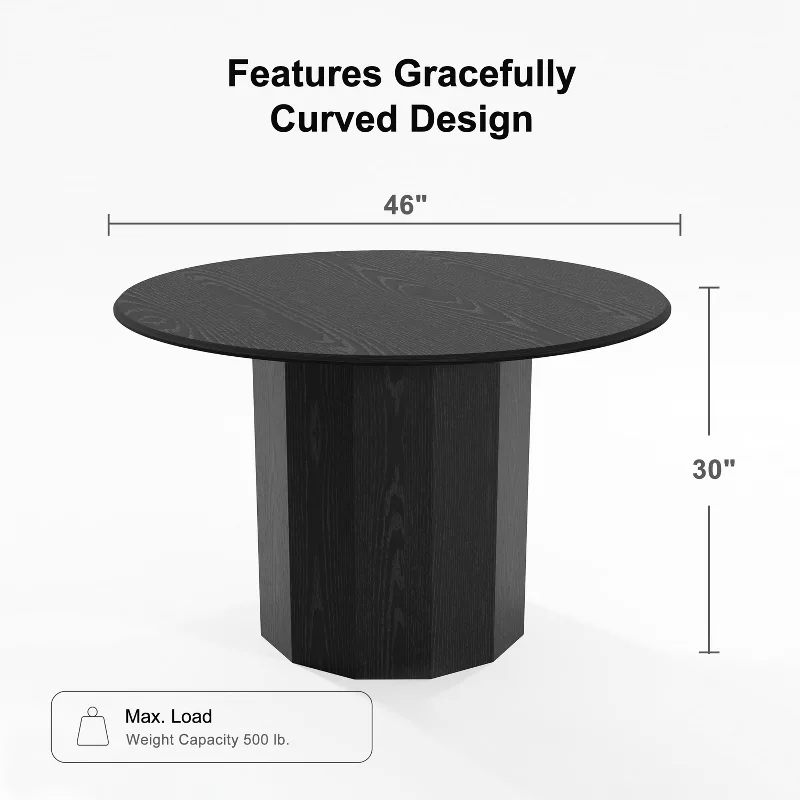 Bring bold elegance to your dining space with the PexFix 46-inch Round Solid Wood Dining Table. Designed for both style and durability, this table features a smooth black solid wood tabletop supported by a sturdy pedestal base for excellent stability and legroom. Its spacious round design comfortably seats up to four people, making it ideal for kitchens, dining rooms, and modern homes.