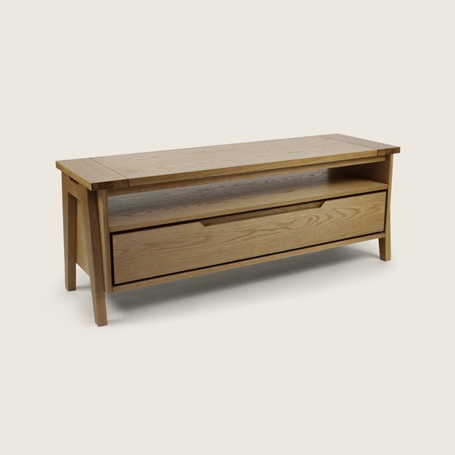 Give your entertainment space a refined, timeless look with this beautifully handcrafted Solid Wood Media Console, designed specially for Indian homes. Built from premium solid wood, it features a smooth natural finish, sturdy frame, and well-planned storage to organise set-top boxes, gaming consoles, remotes, speakers, and everyday essentials. The clean design blends effortlessly with modern, classic, and earthy interiors, while the handcrafted detailing by skilled Indian artisans ensures durability and long-term stability. This media console not only elevates your TV area but also adds warmth and depth to your living room décor.